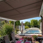 Elegantní hliníkové bezúdržbové zastřešení terasy včetně integrované vrchní markýzy