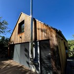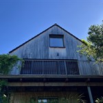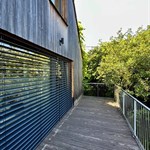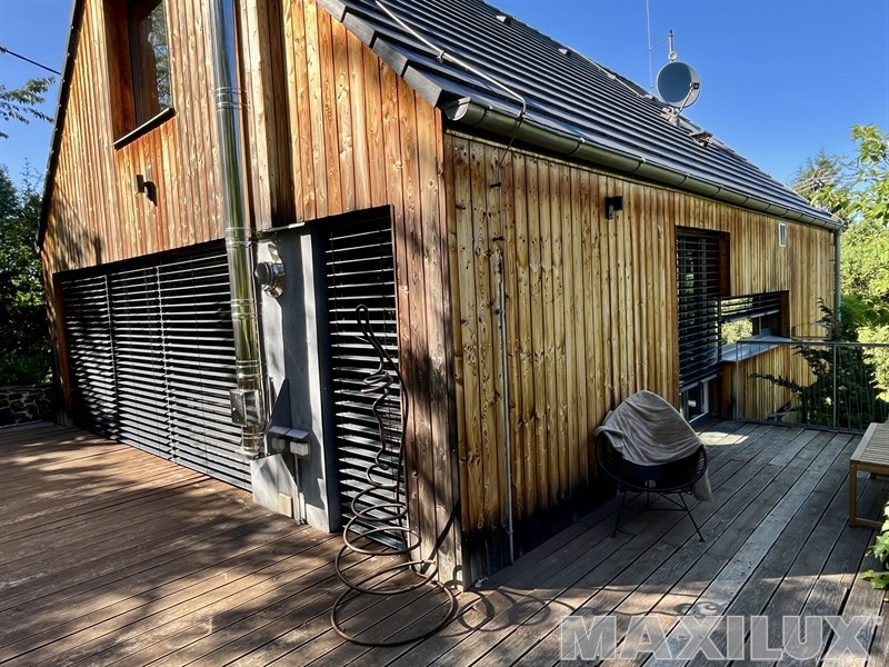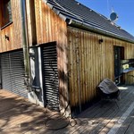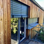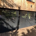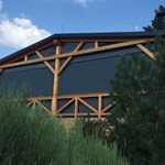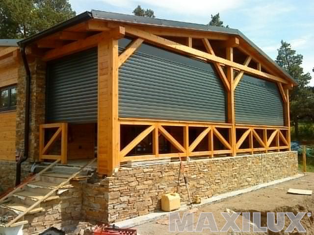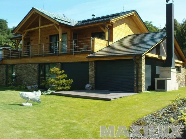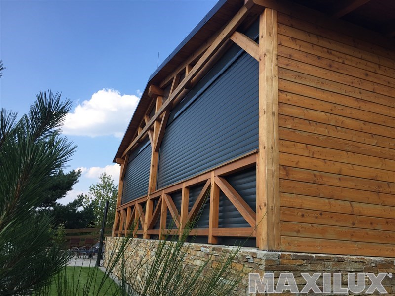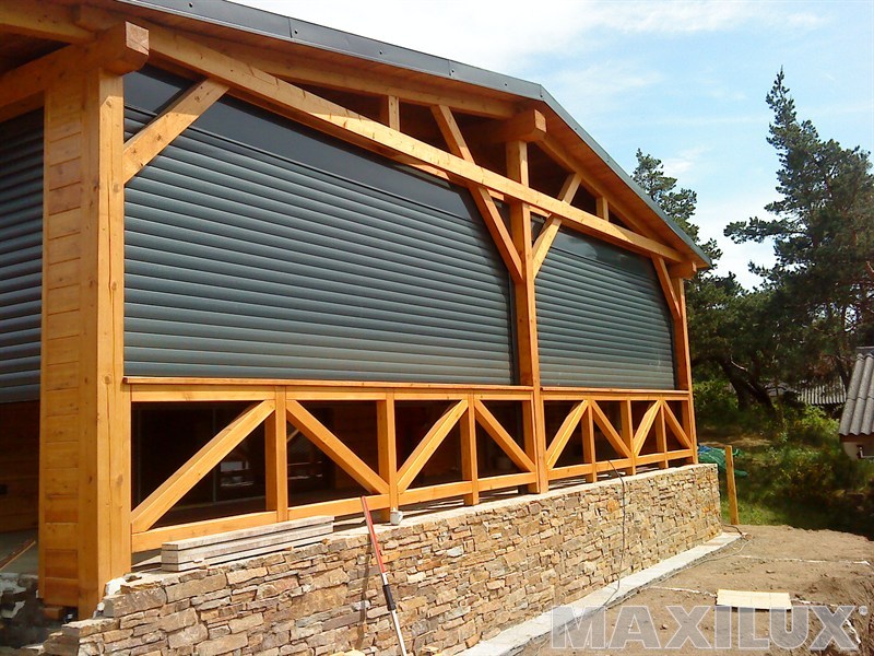 Hliníková roleta, dřevo a kámen