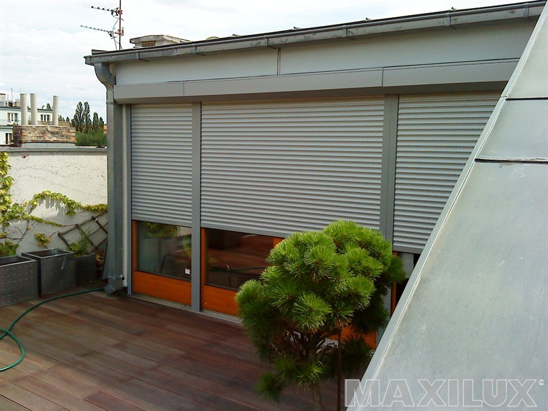 Předokenní hliníková roleta zapuštěná do konstrukce střechy