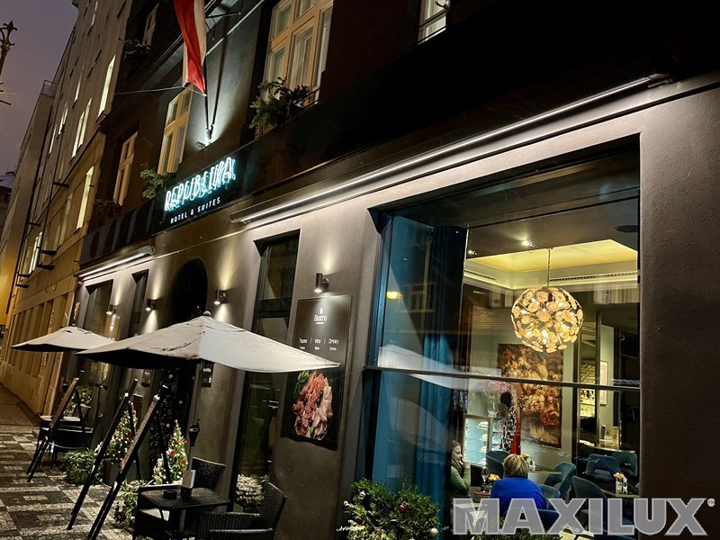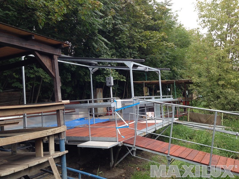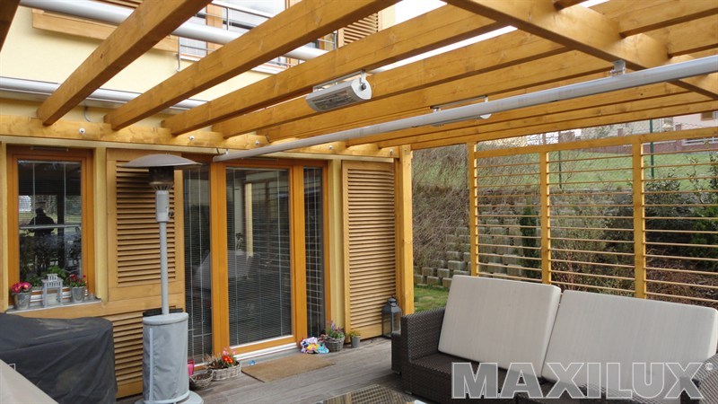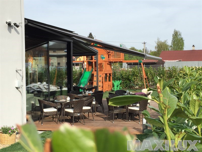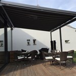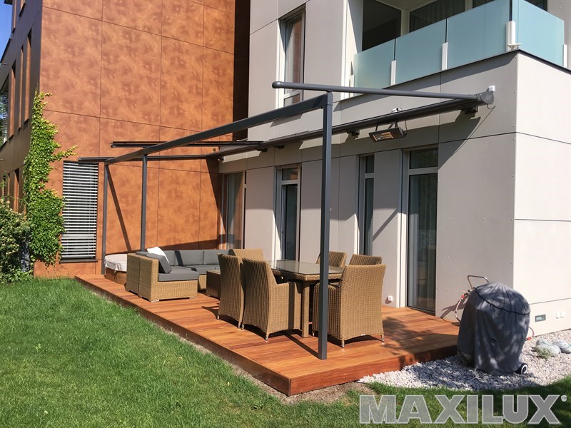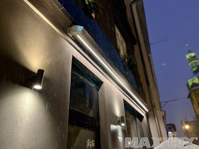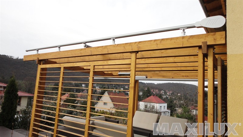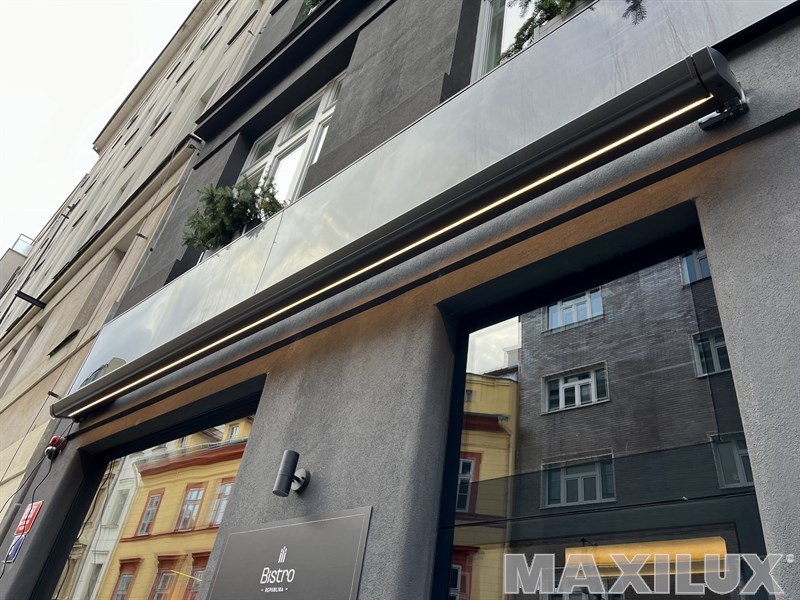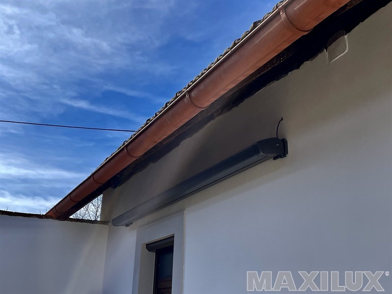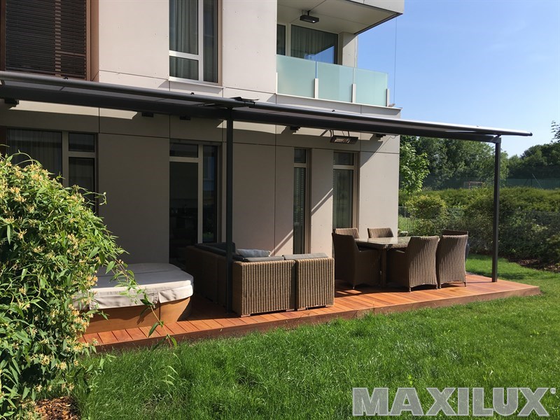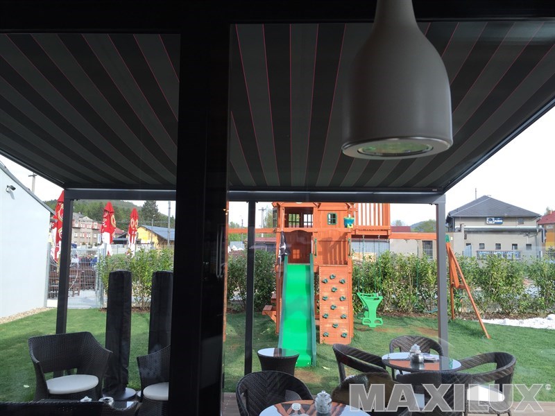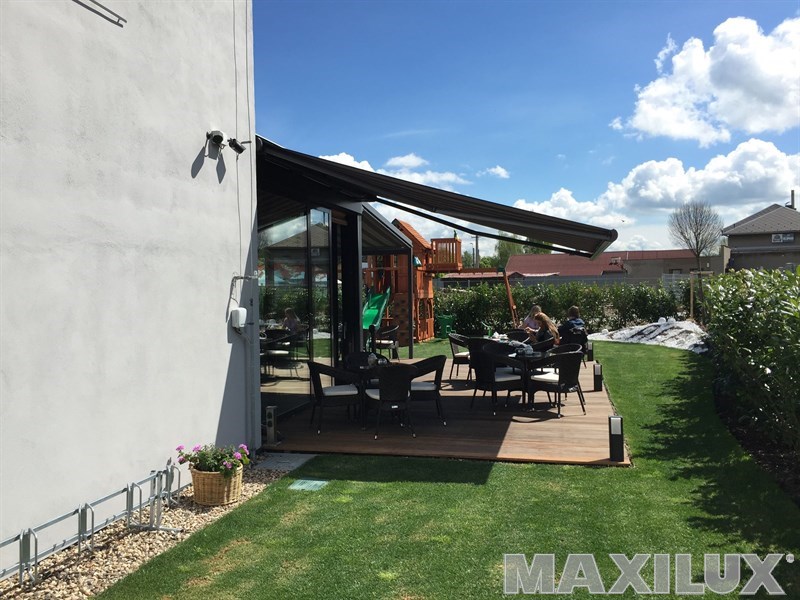 Markýza doplněná o infratopení a světelnou rampu na dálkové ovládání