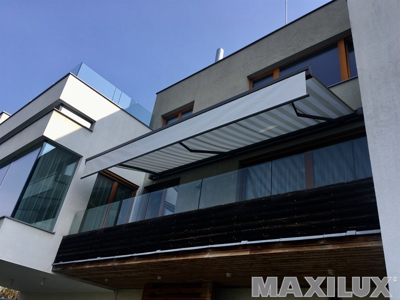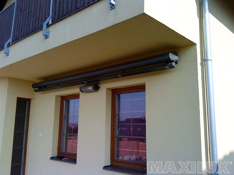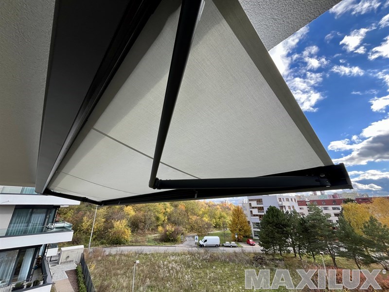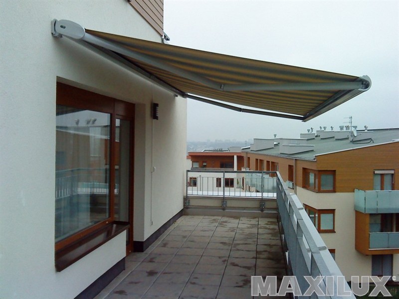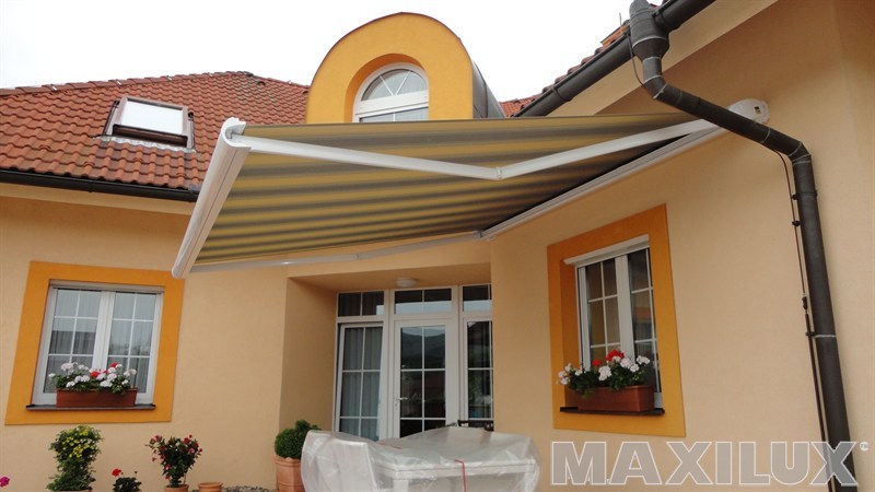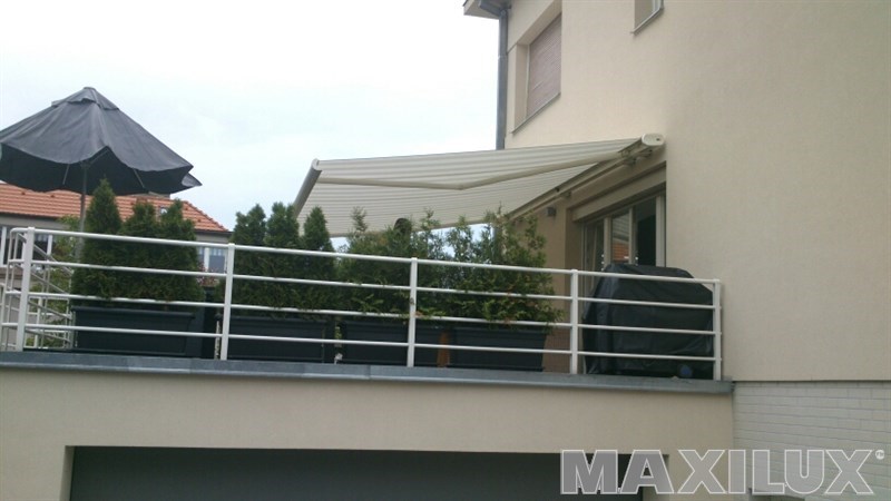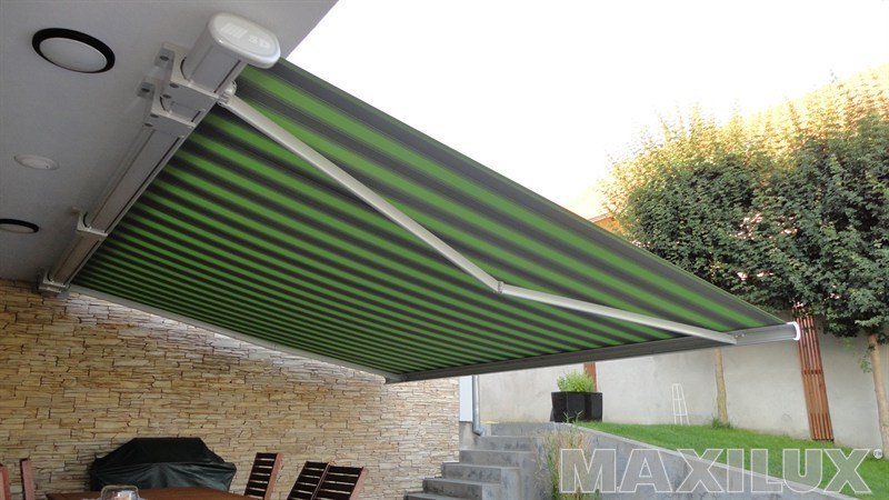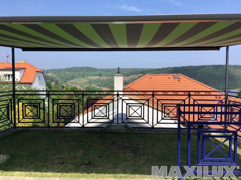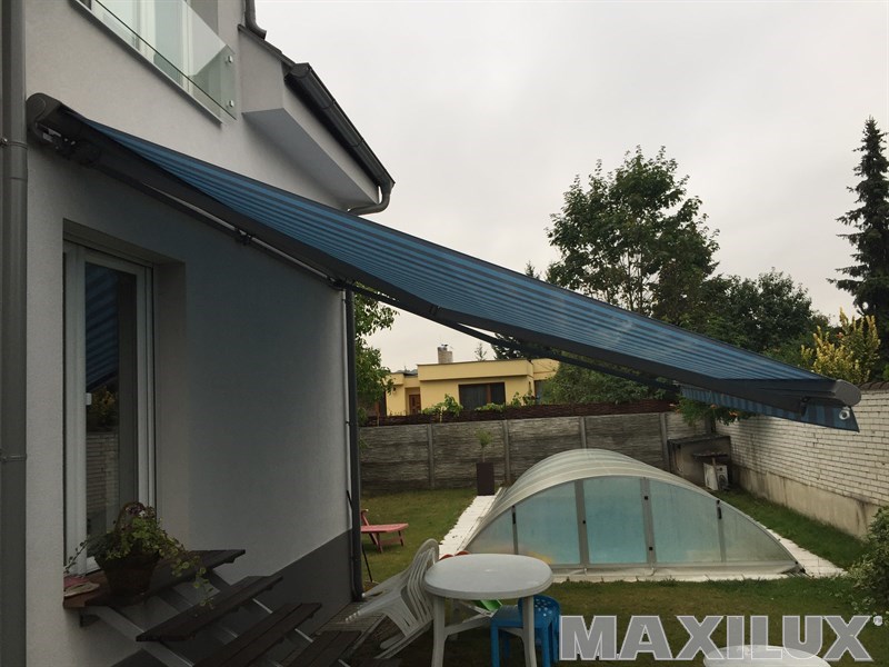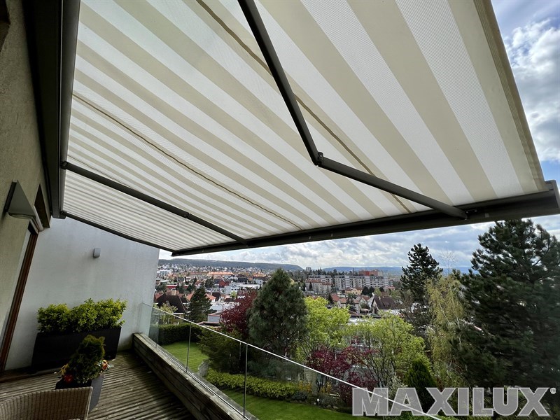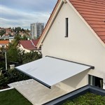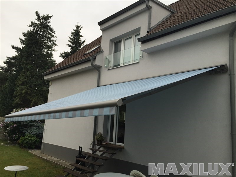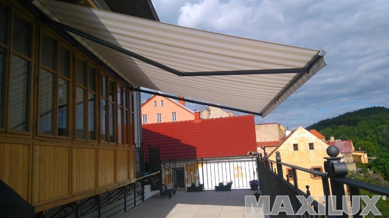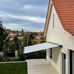 Speciální markýza s větším výsuvem než je šířka s motorem na dálkové ovládání
