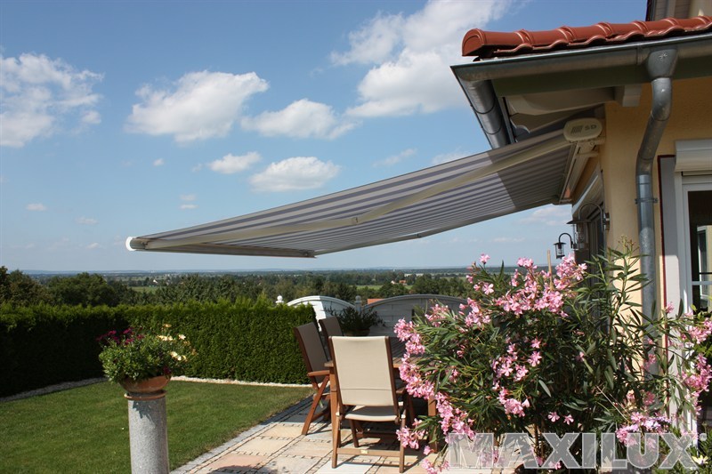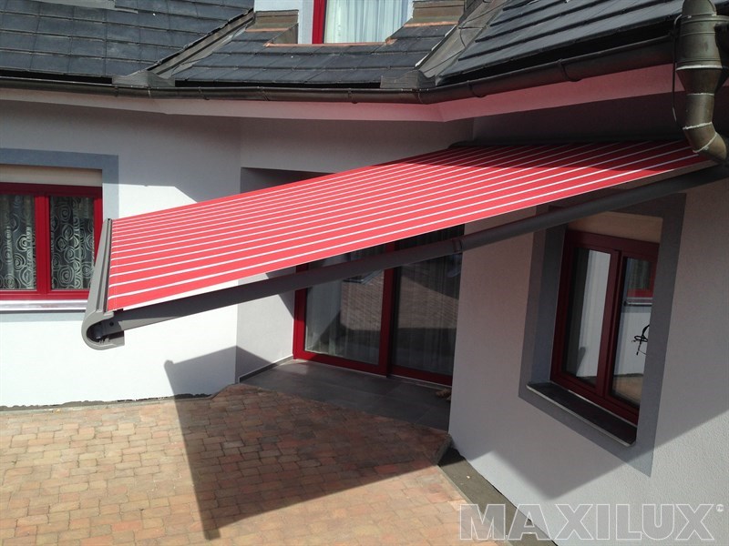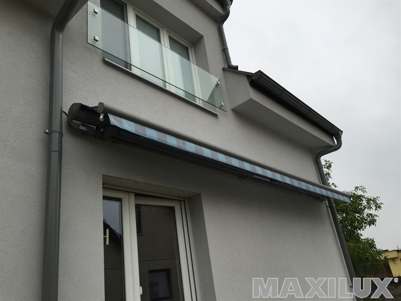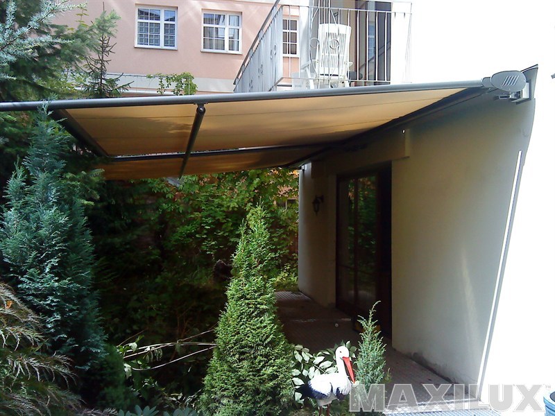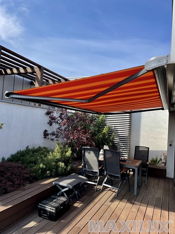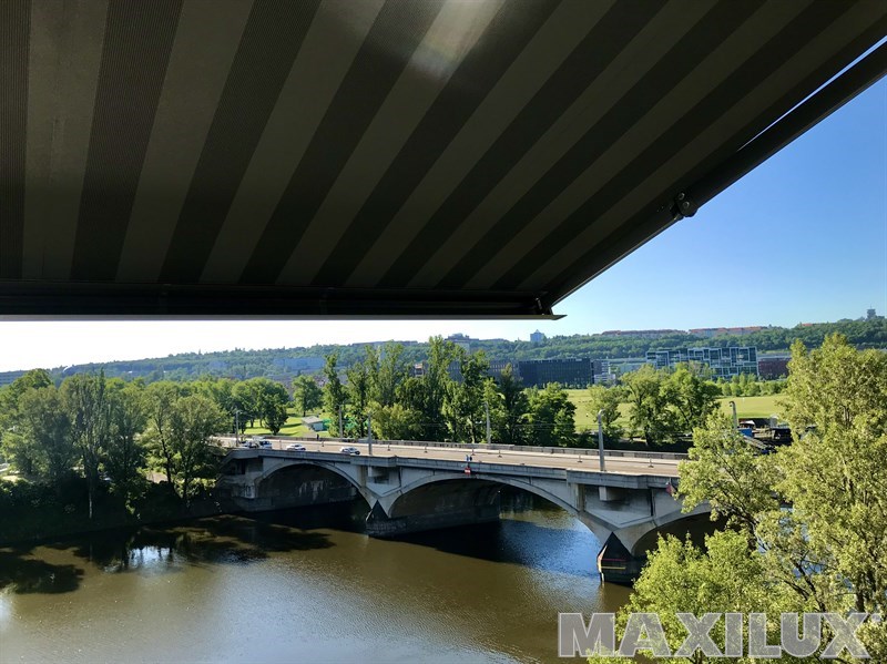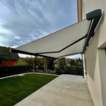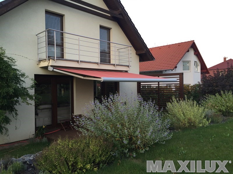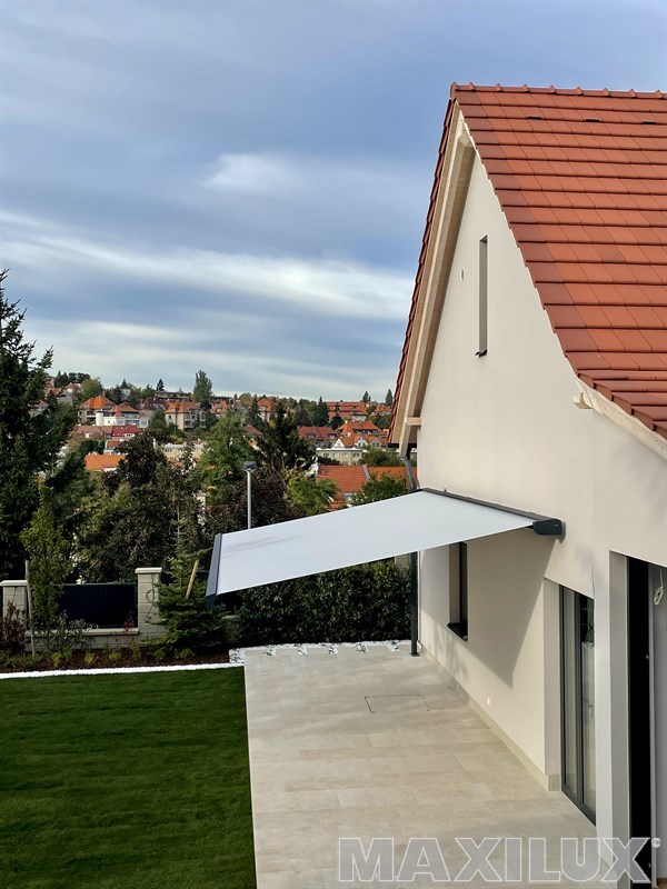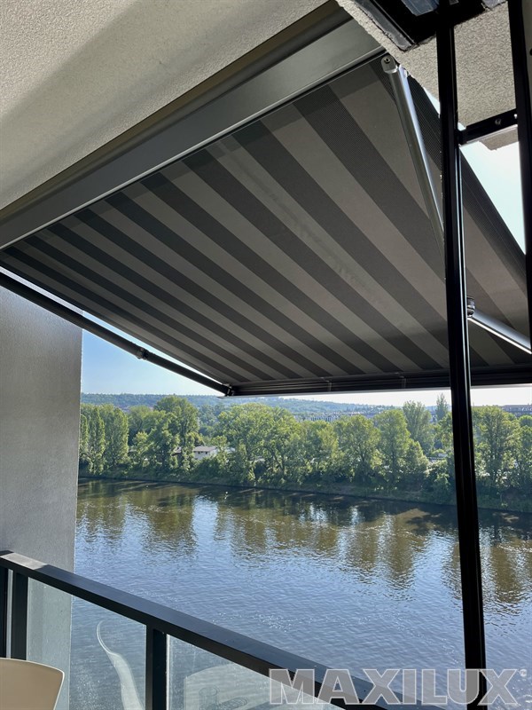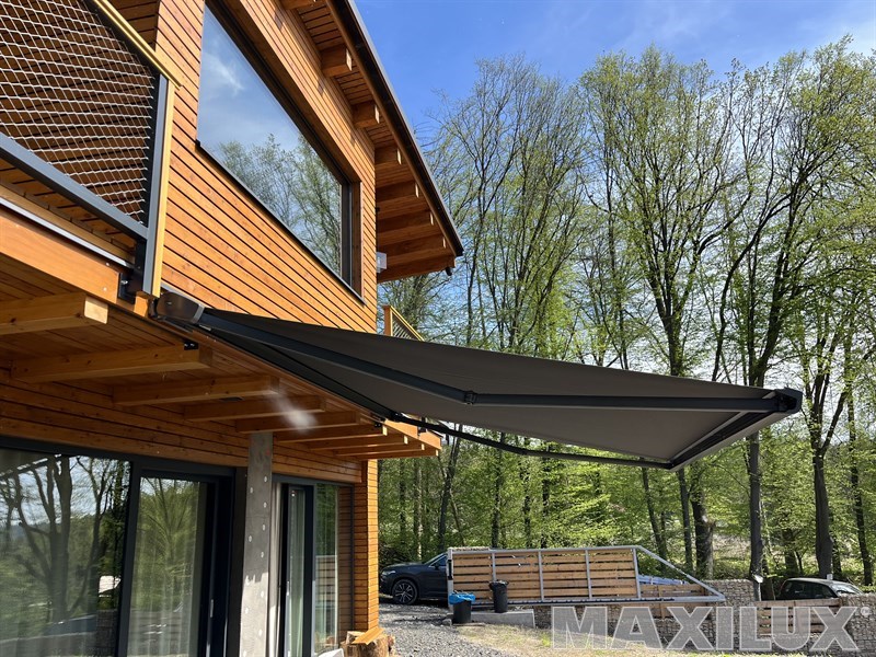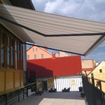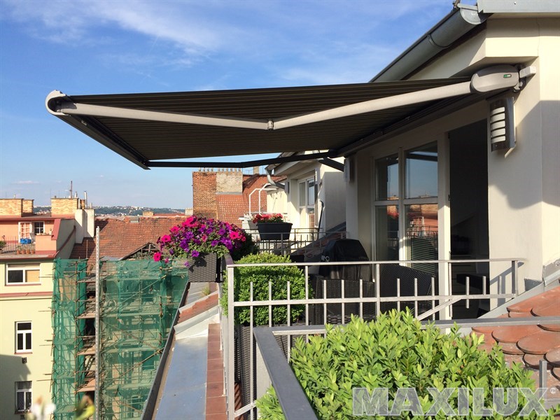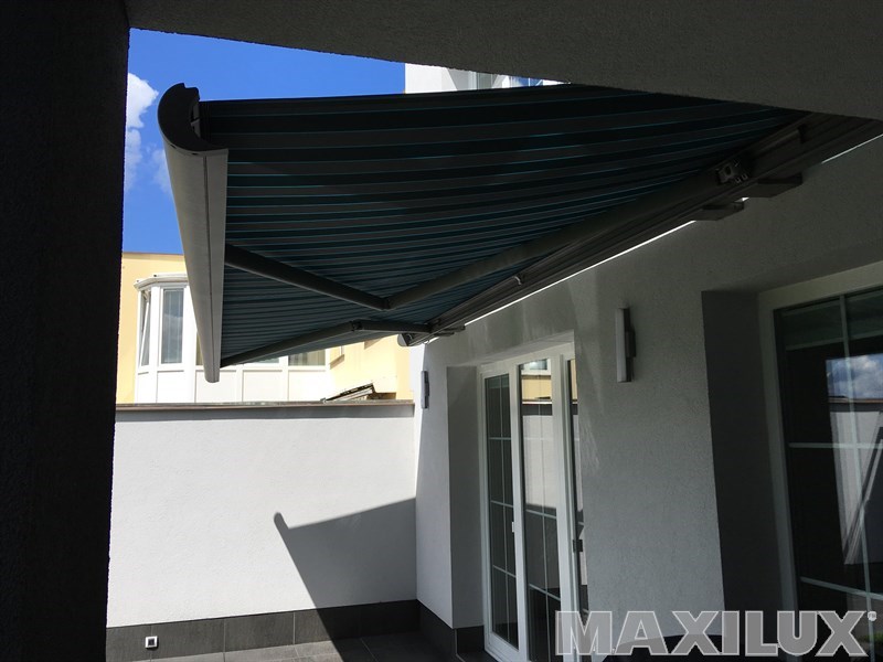 Speciální markýza s větším výsuvem než je šířka s motorem na dálkové ovládání