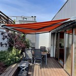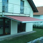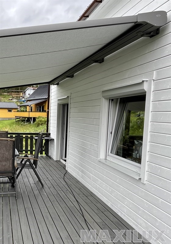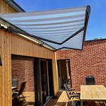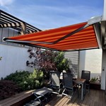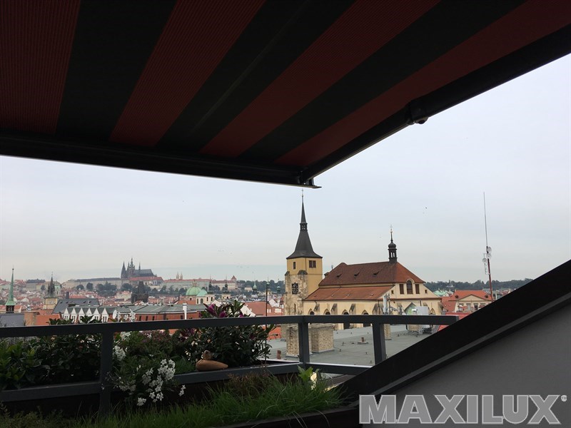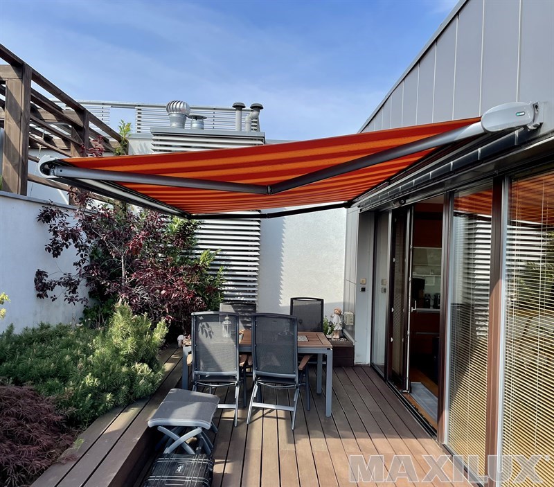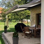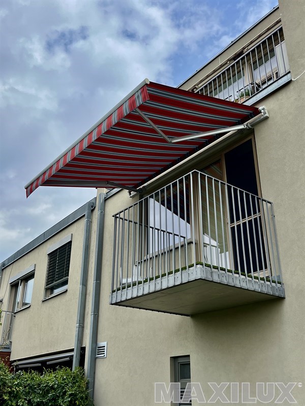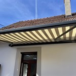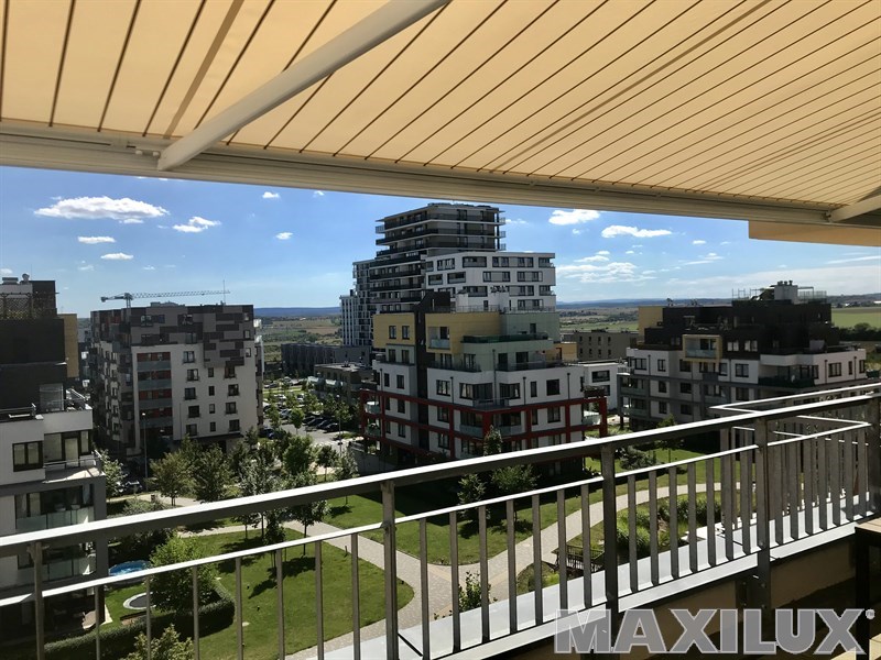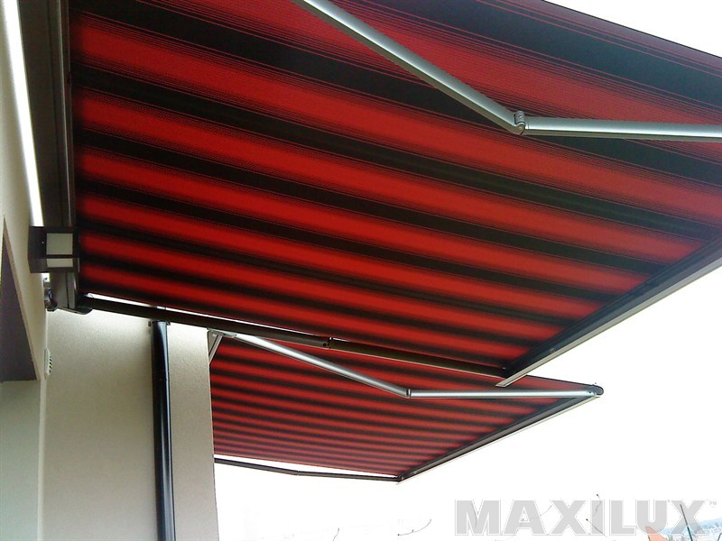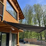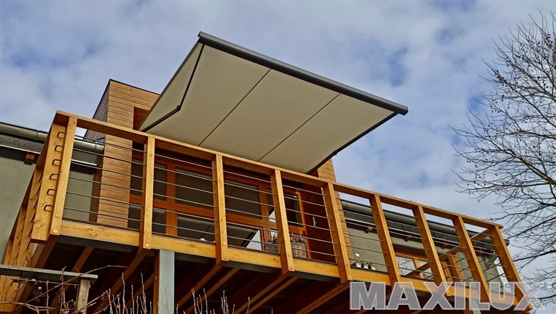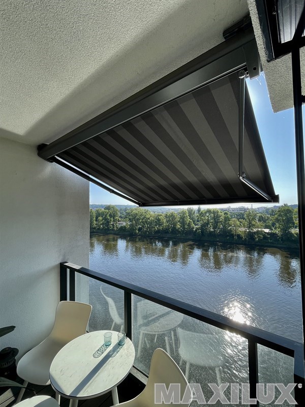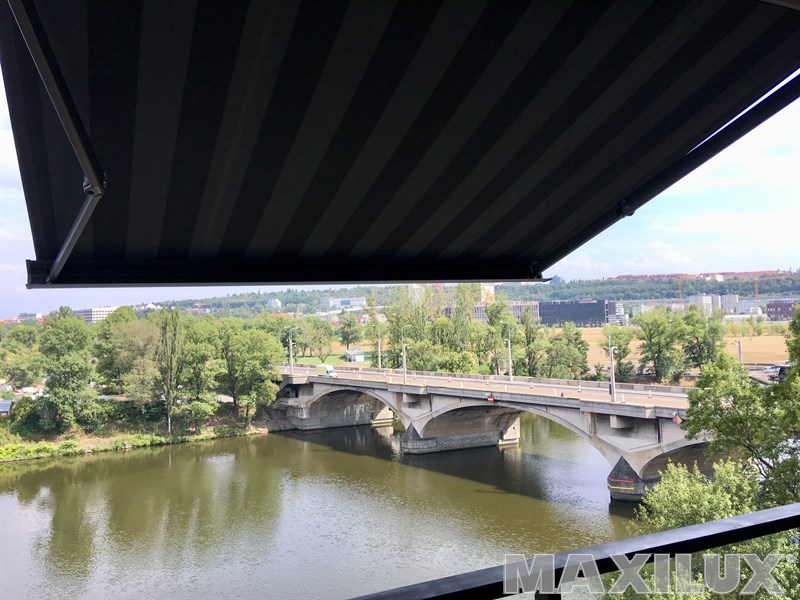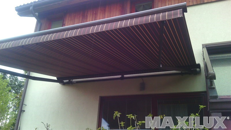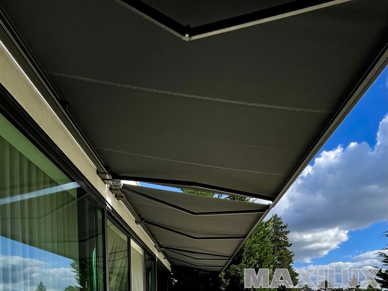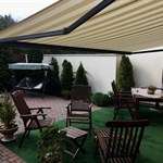Speciální markýza s větším výsuvem než je šířka s motorem na dálkové ovládání