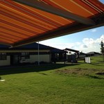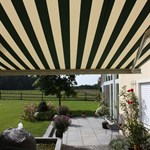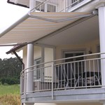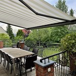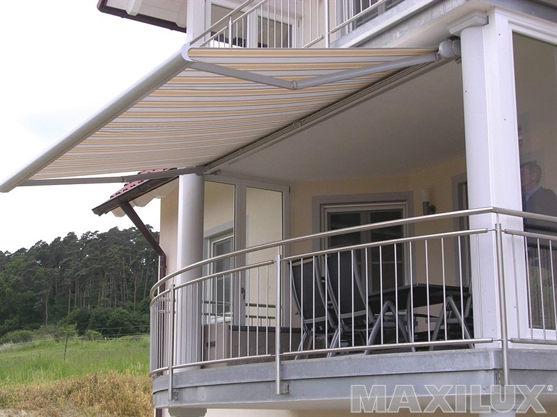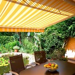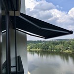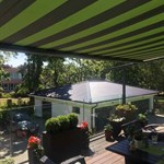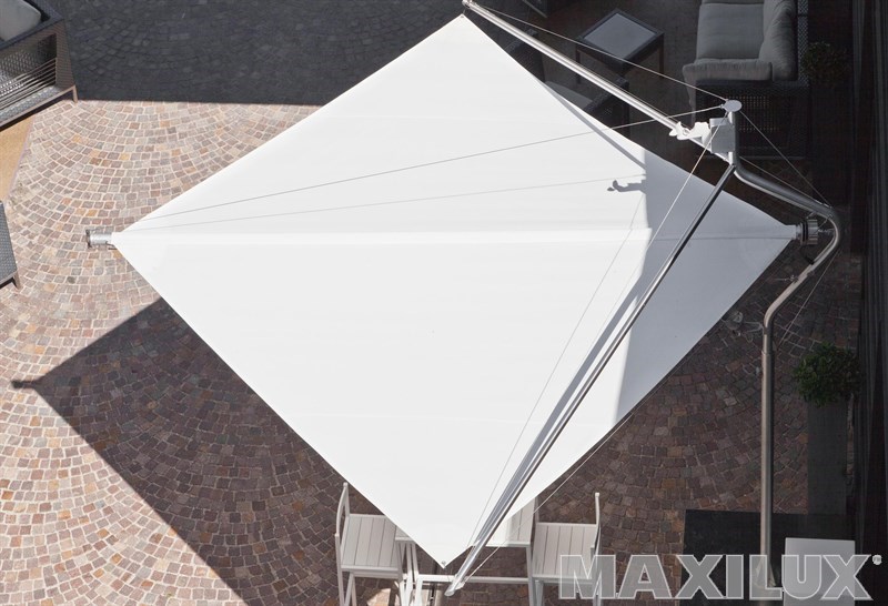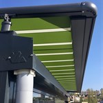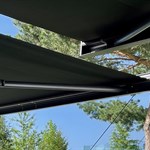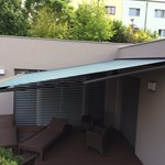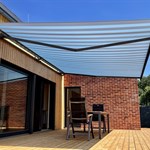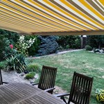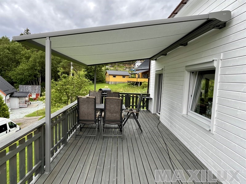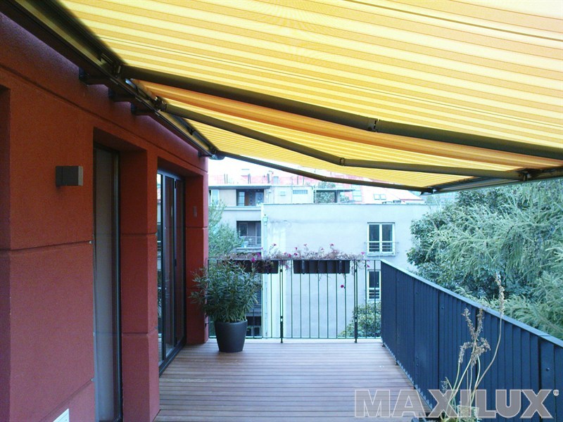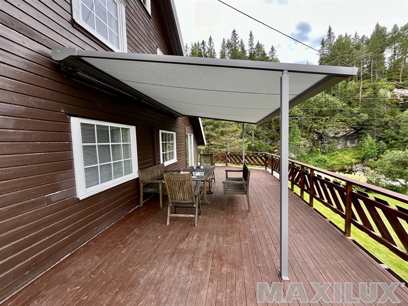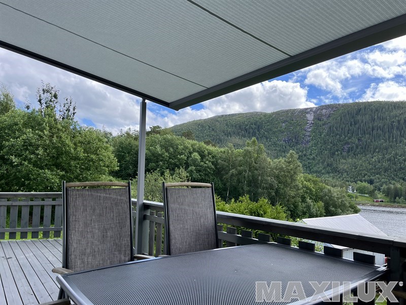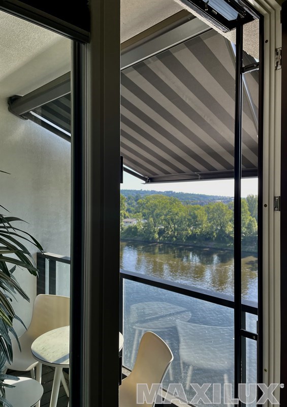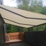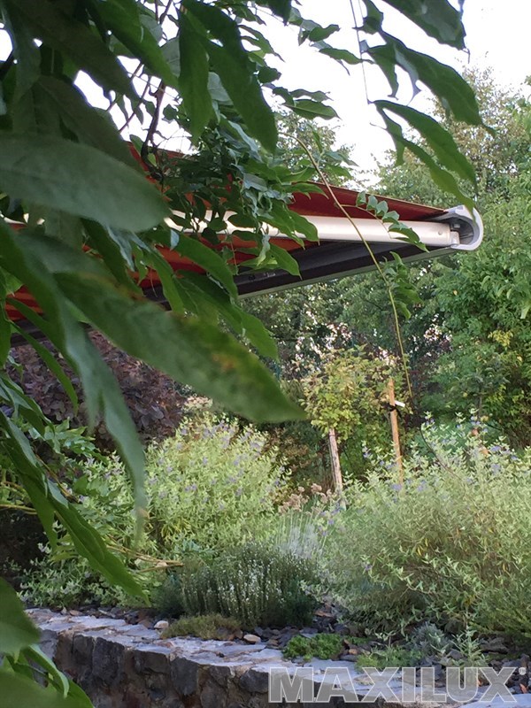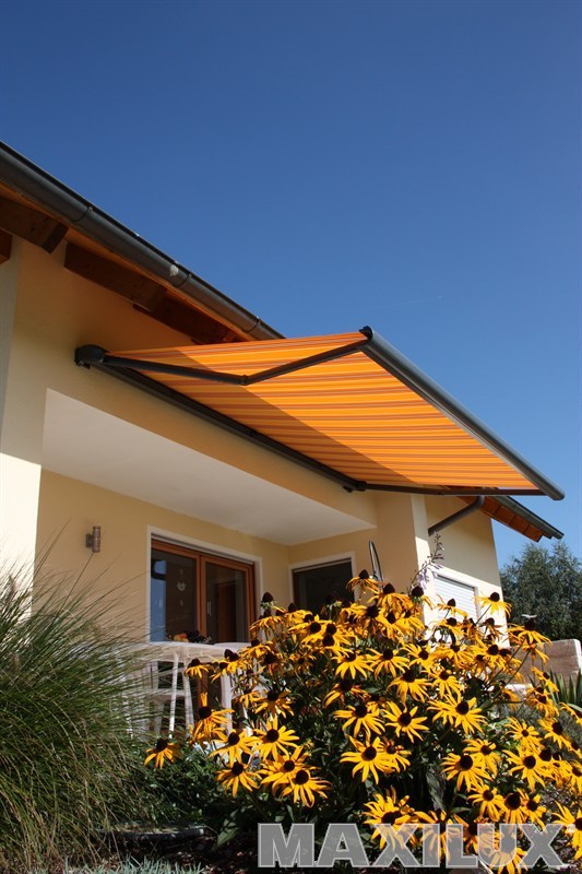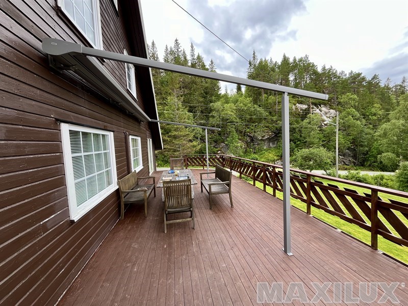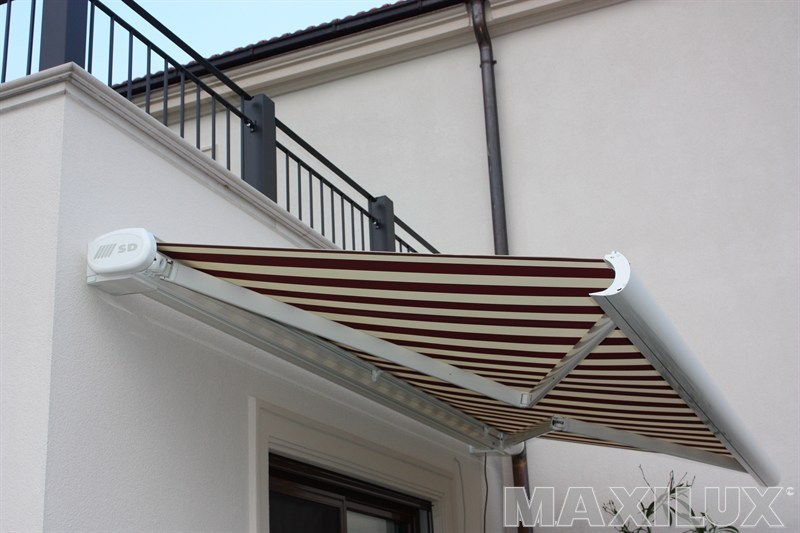 Speciální markýza s větším výsuvem než je šířka s motorem na dálkové ovládání