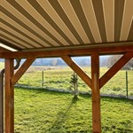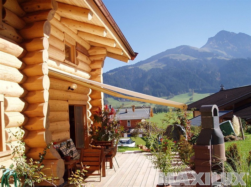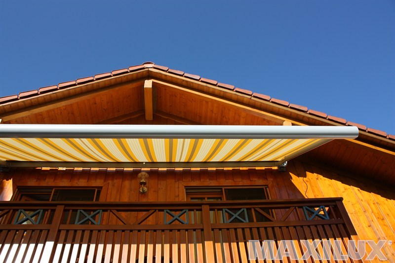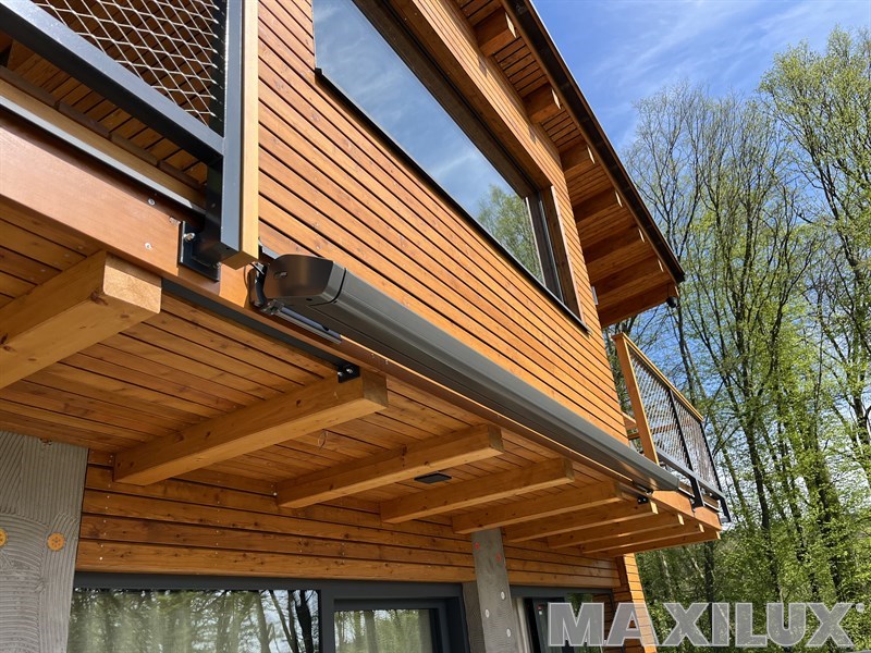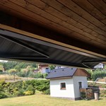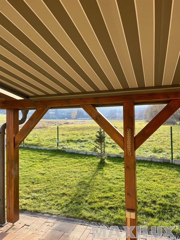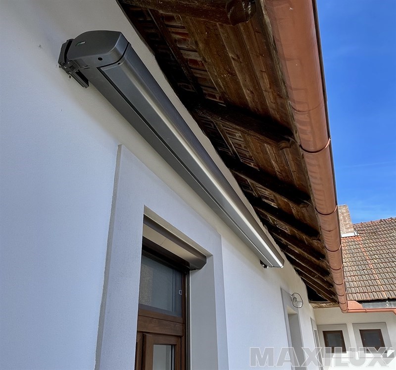 Elegantní kazetová markýza na dálkové ovládání, kazeta jen 13cm, montáž na dřevěný trám