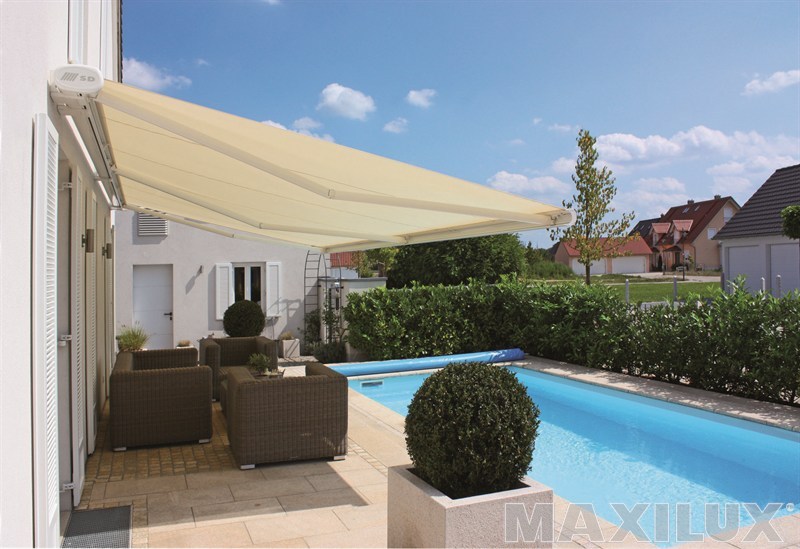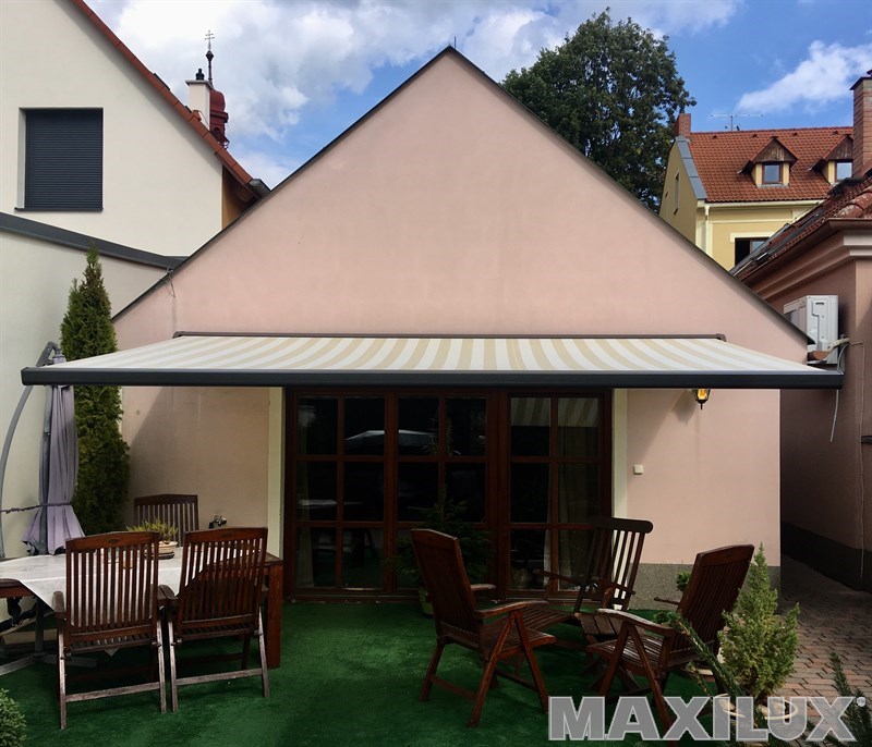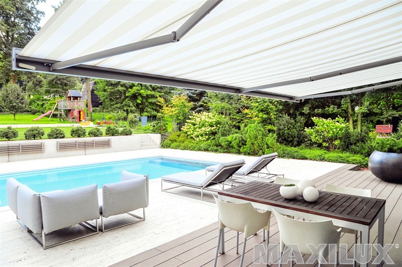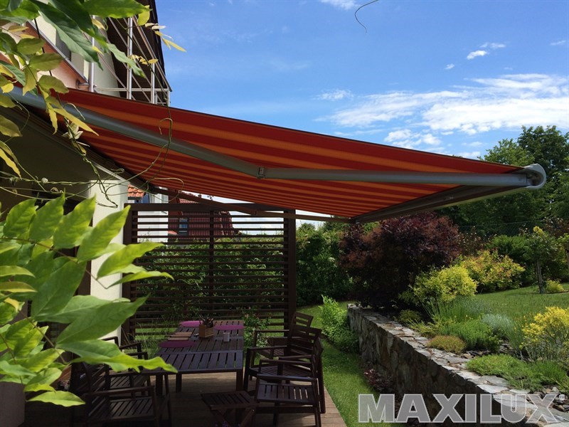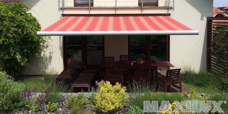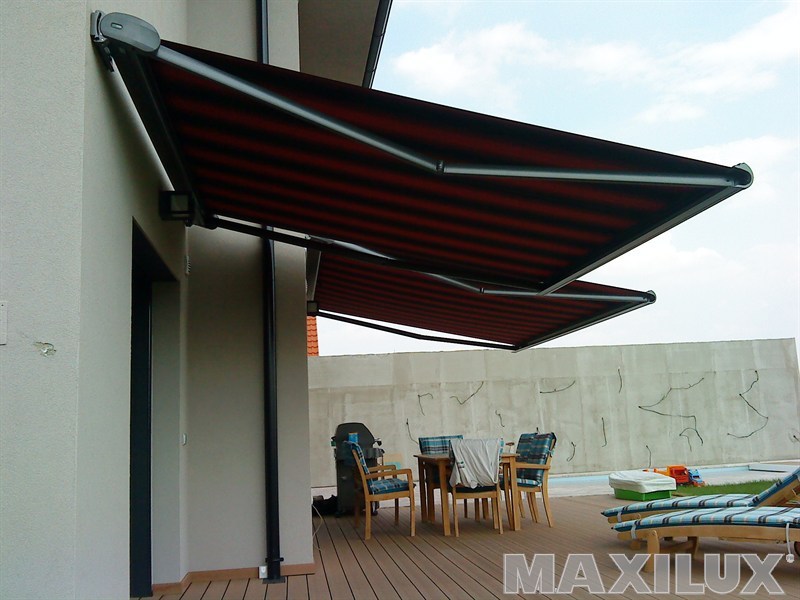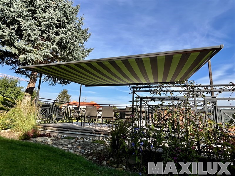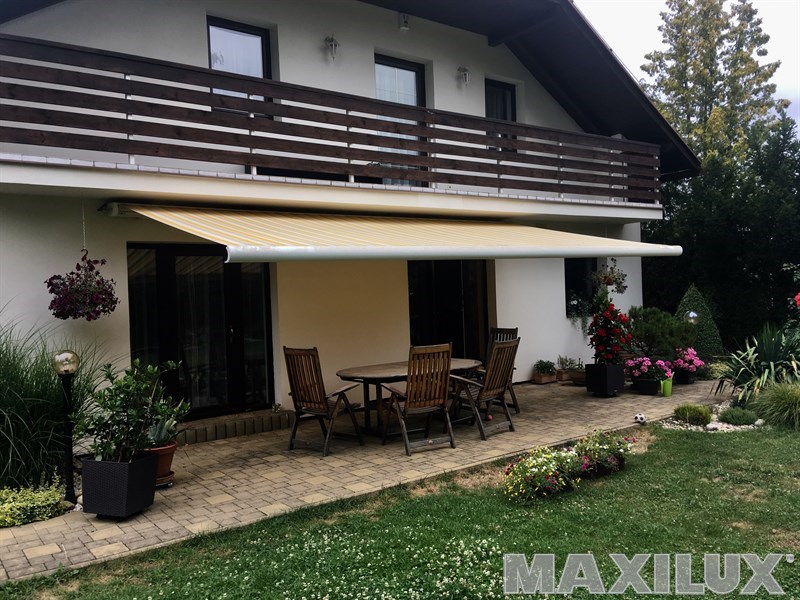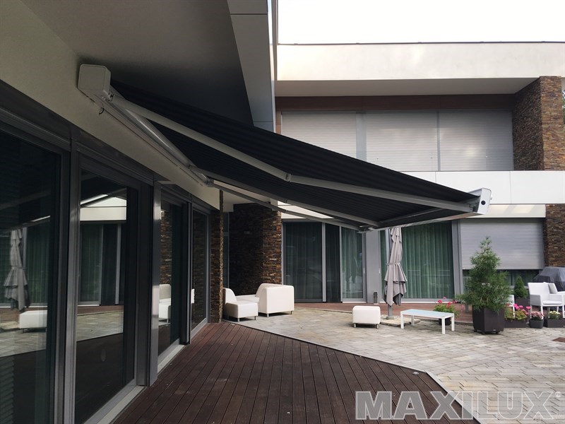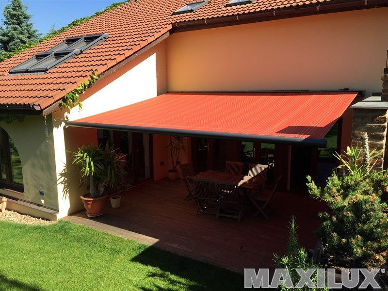 Kazetová velkoprostorová markýza na dálkové ovládání pro velké terasy