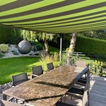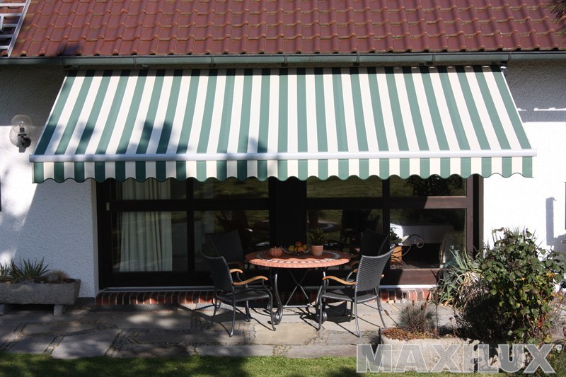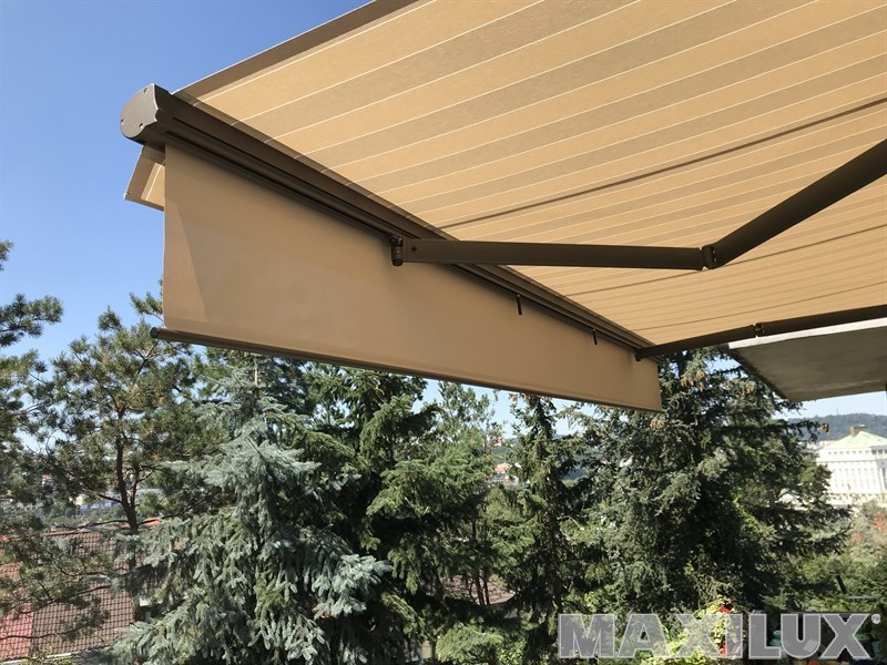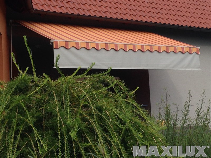 Elegantní markýza na dálkové ovládání včetně předního výsuvného volánu