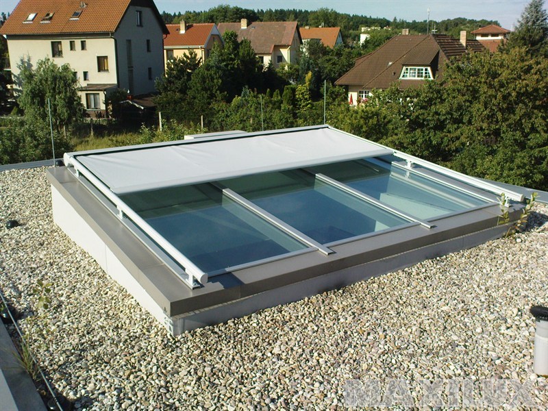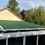 Kazetová markýza s přesahem na dálkové ovládání určená na stínění zimních zahrad