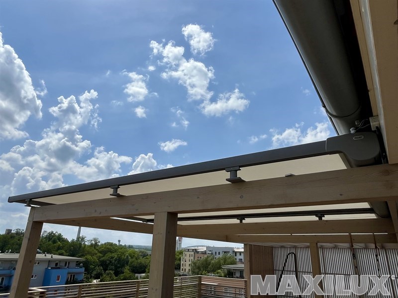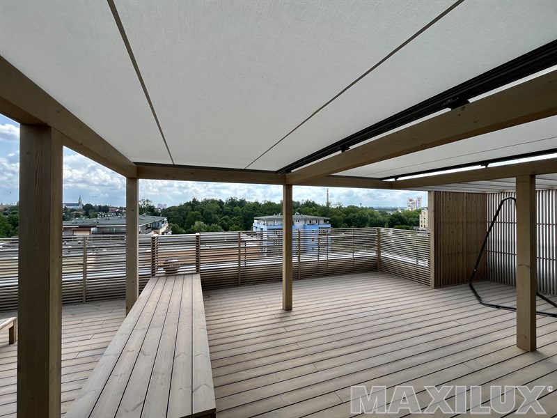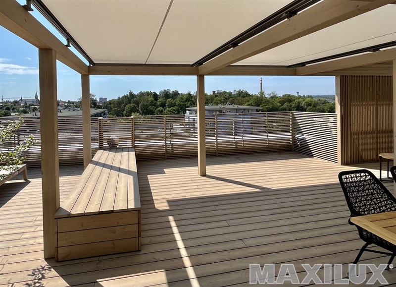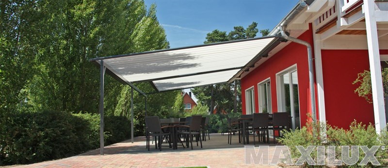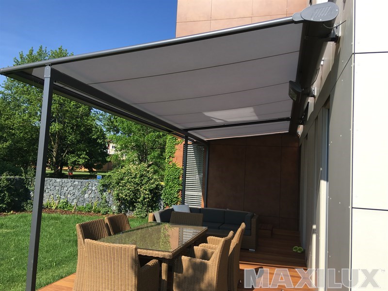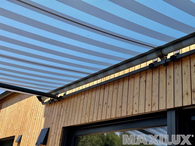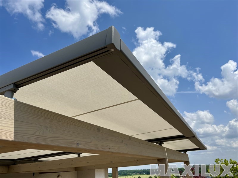 Velkoprostorová kazetová markýza určené na dřevěné, hliníkové a ocelové kontrukce a pergoly
