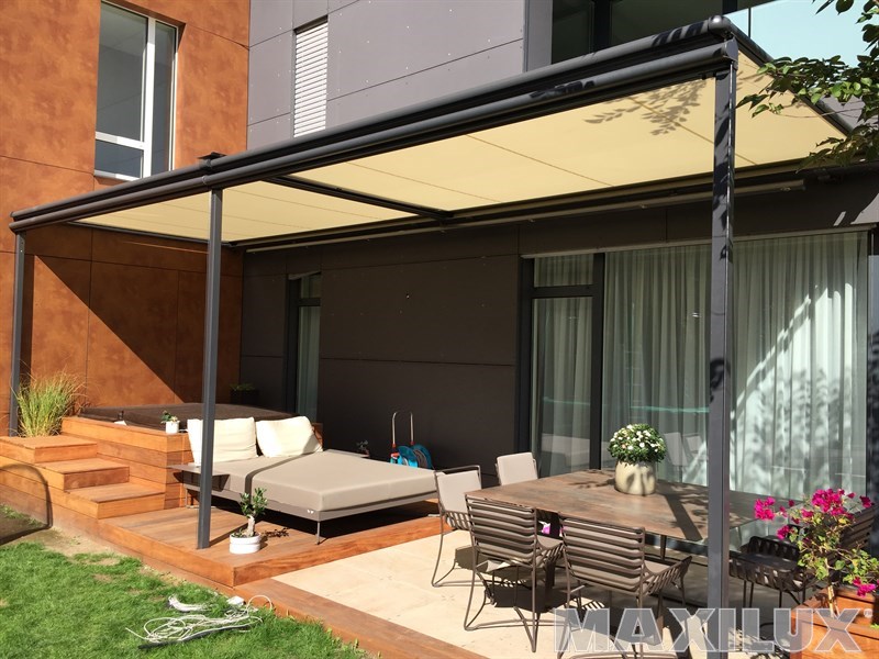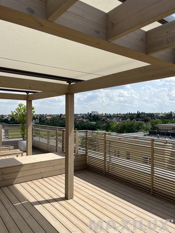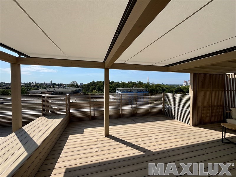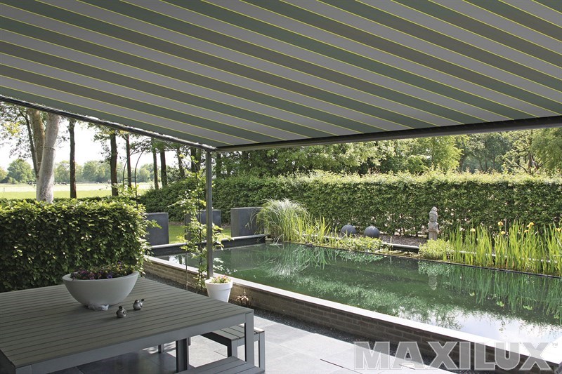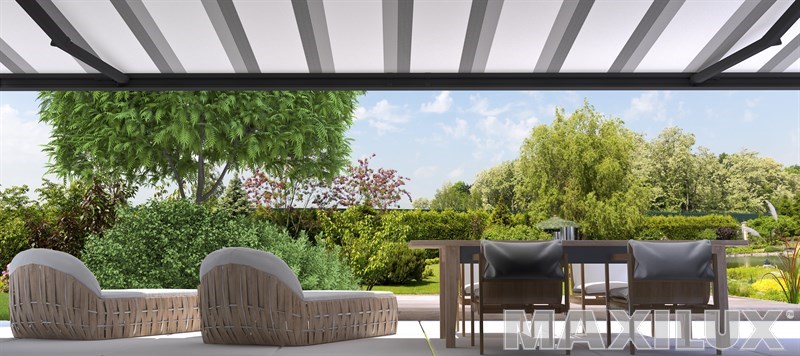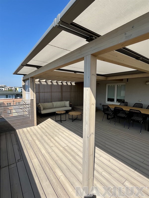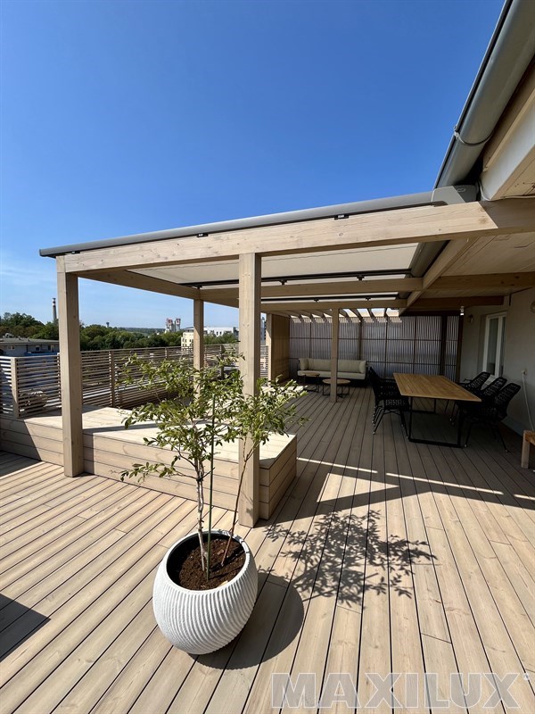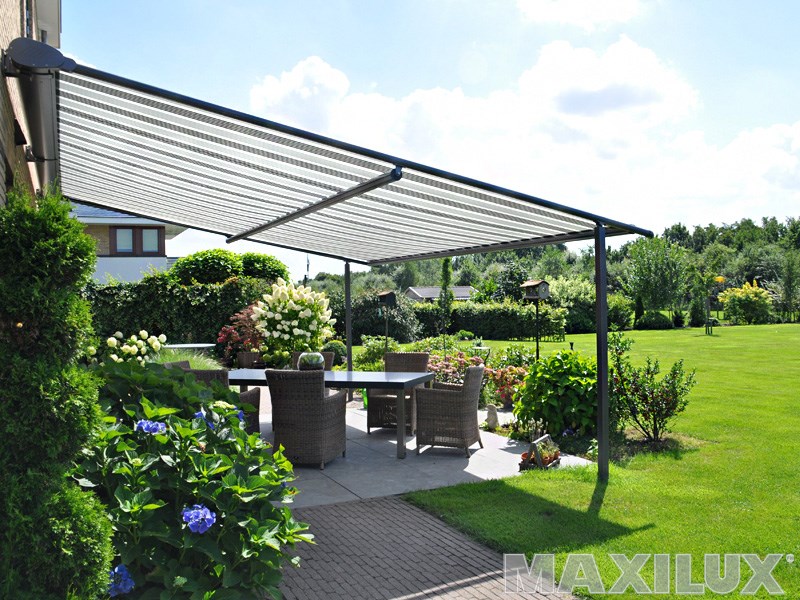 Velkoprostorová kazetová markýza určené na dřevěné, hliníkové a ocelové kontrukce a pergoly