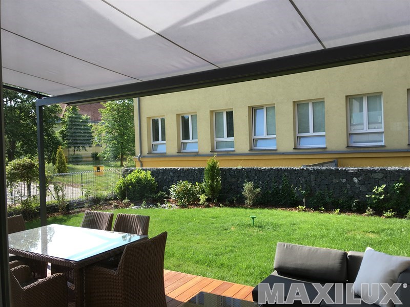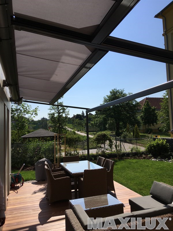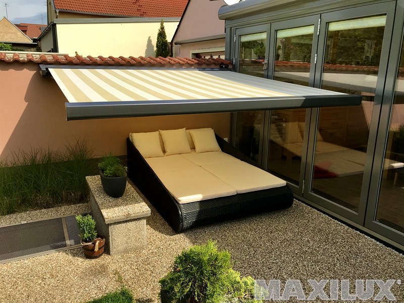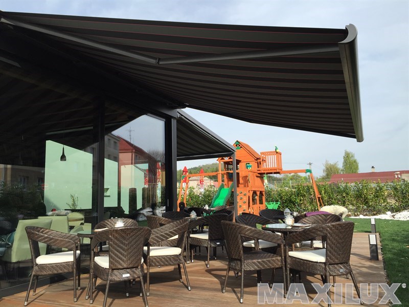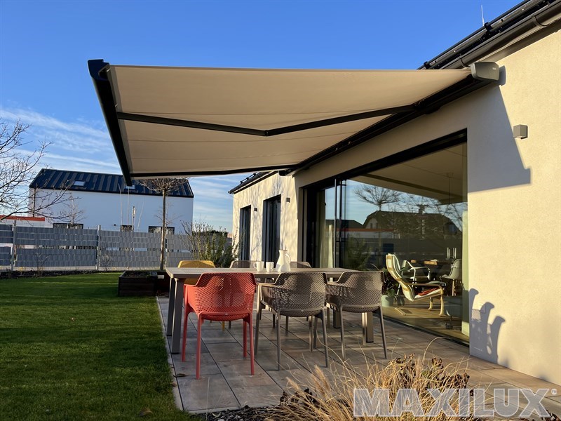 Kazetová velkoprostorová markýza pro velké terasy na dálkové ovládání