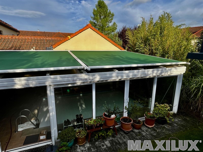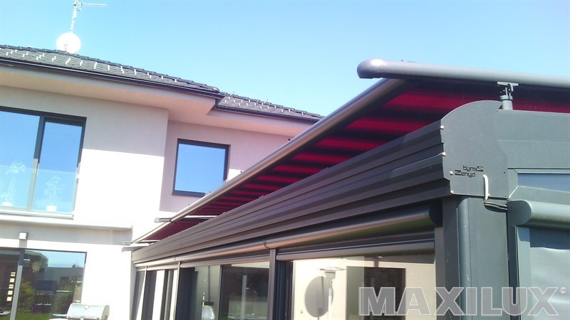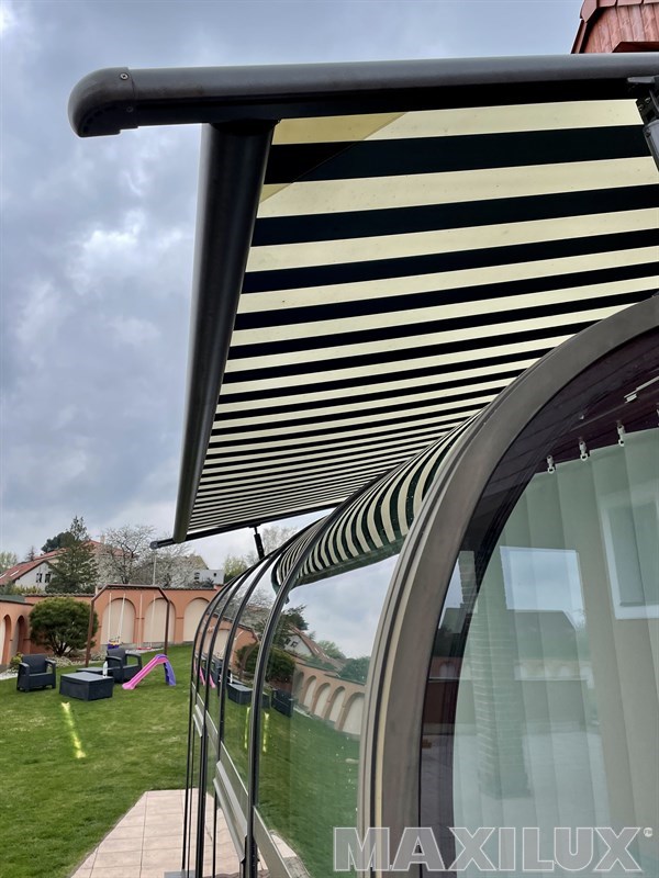 Luxusní kazetová markýza na dálkové ovládání určená na stínění zimních zahrad