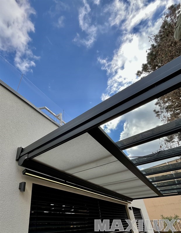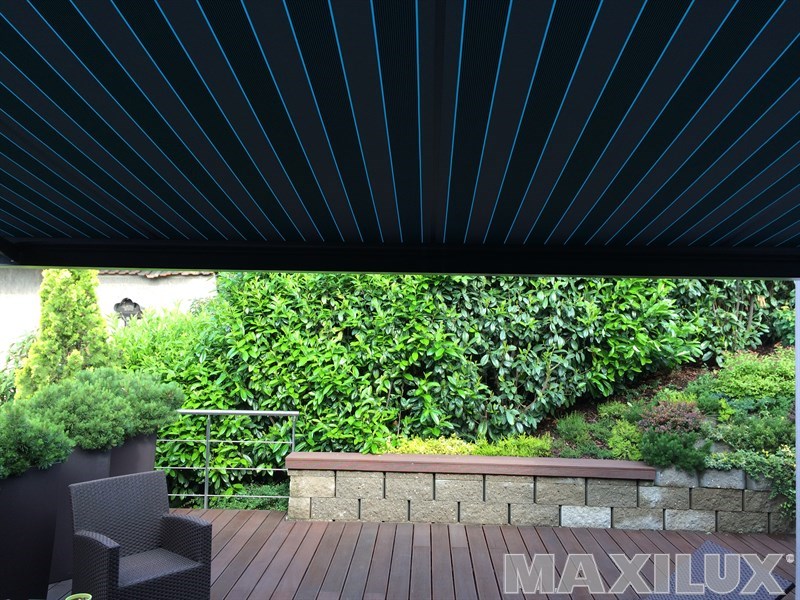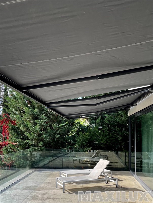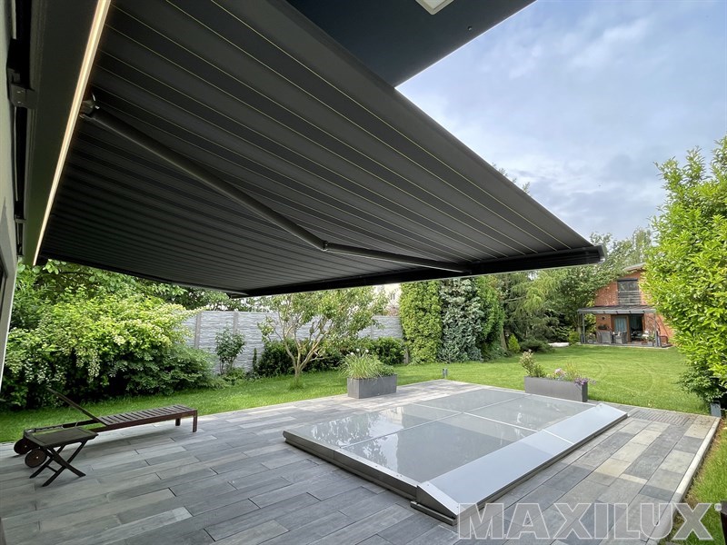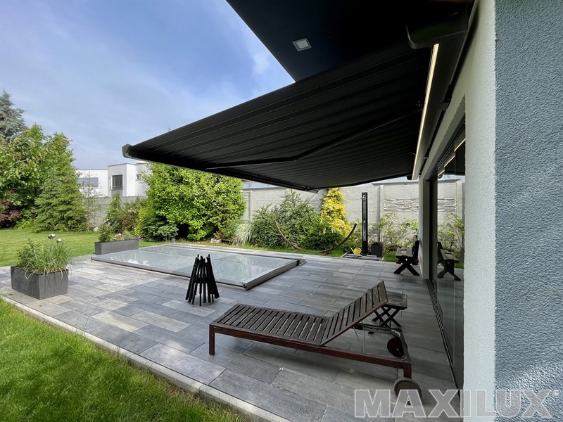 Luxusní kazetová velkoprostorová markýza pro velké terasy včetně osvětlení a dálkového ovládání