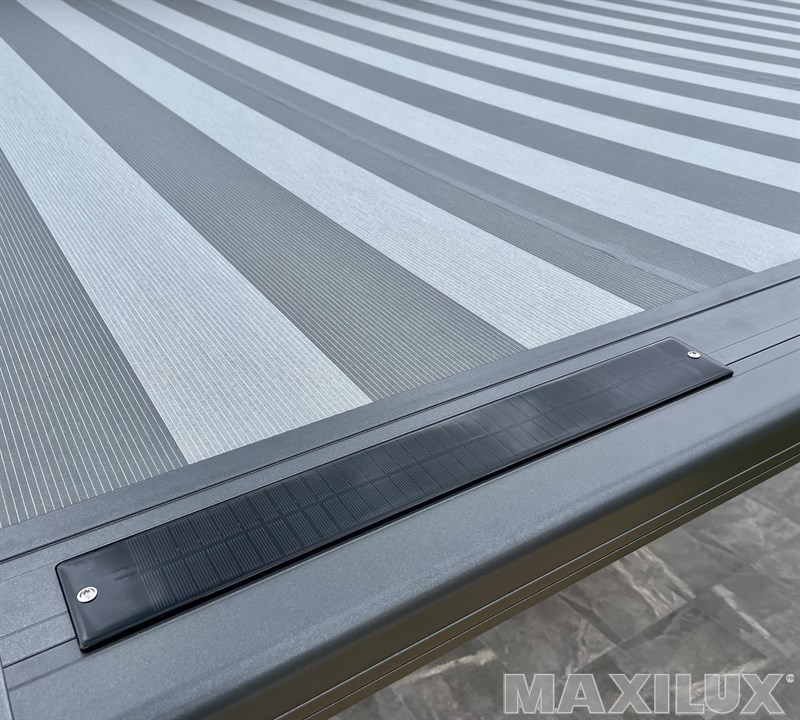 Luxusní velkoprostorová kazetová markýza na dálkové ovládání s předním volánem na solární pohon