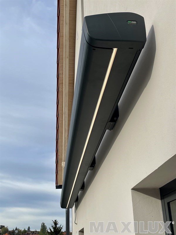 Luxusní velkoprostorová kazetová markýza se světelnou rampou na dálkové ovládání