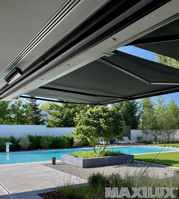Luxusní kazetová velkoprostorová markýza pro velké terasy včetně topení a dálkového ovládání