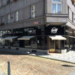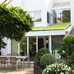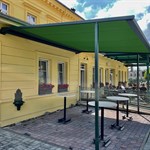 Polokazetová designová výsuvná markýza pro zastínění venkovního posezení u restaurace